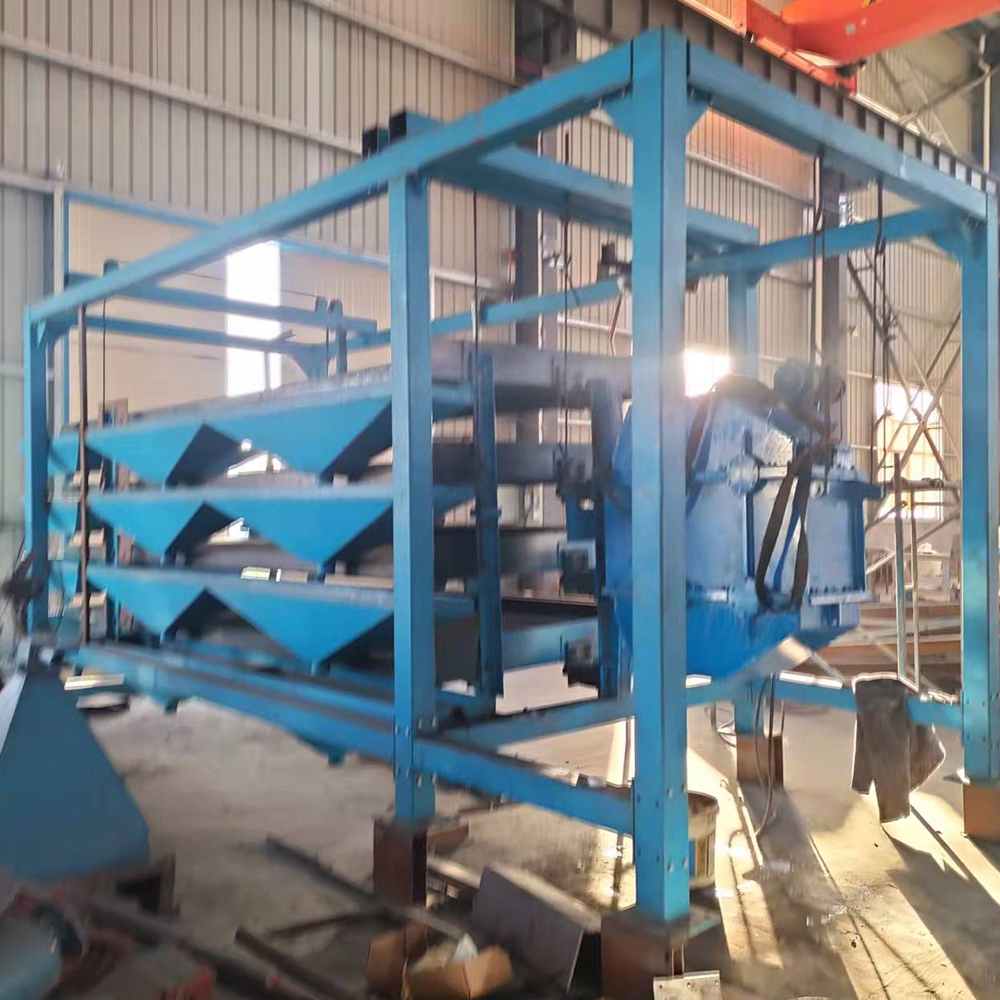 The Multi-deck Shaking Table is a high-efficiency gravity separation equipment widely used in mineral processing for the beneficiation of various ores, including tungsten, tin, tantalum, niobium, iron, manganese, chromium, titanium, bismuth, lead, gold, and other rare and precious metals. It is also suitable for coal cleaning. Designed with multiple layers, this equipment significantly improves processing capacity per unit floor area while maintaining precise separation performance for different particle sizes, ranging from coarse sand (2-0.5mm) to fine sand (0.5-0.074mm) and slime (-0.074mm). Its effective recovery size range for tungsten, tin, and similar ores is 2-0.022mm.