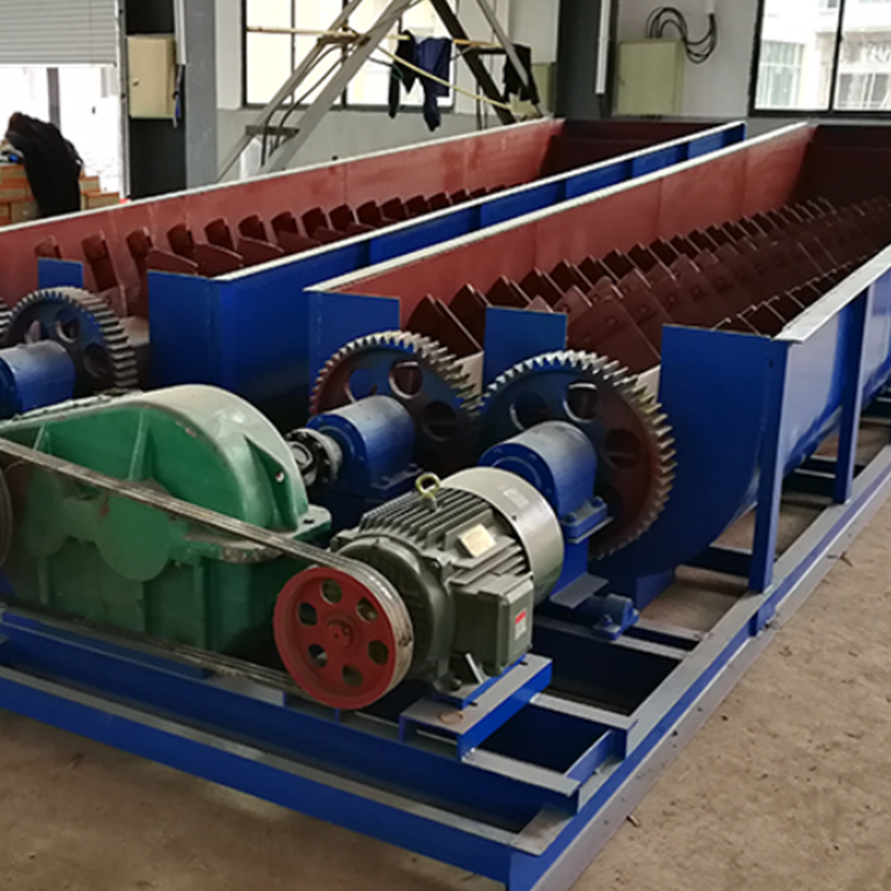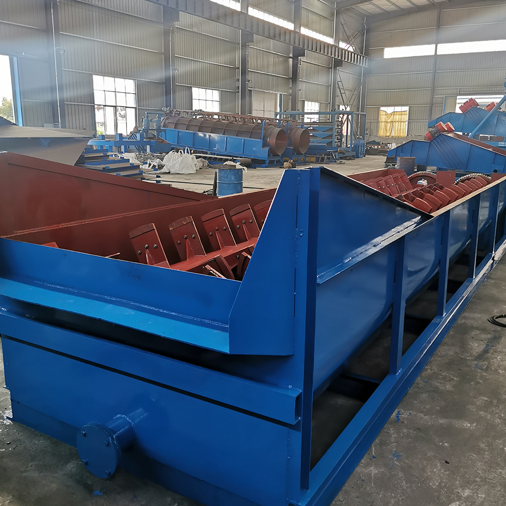 When the sand washing machine(log Washer) is running, the motor drives the impeller slowly turning through the belt, reducer, after the gear reduce the speed, sand and gravel are washed into the tank to the trough and driven by the the impeller, with tumbling and grinding each other to remove sand and gravel covered the surface of the impurities, while damages to the water vapor coated layer of sand to facilitate dehydration; at the same time, adding water to form a strong water flow, timely brings small proportion of impurities and foreign matter away and discharged from washing exports of the overflow tank, then finish the cleaning action. The cleaned sand and gravel are brought away from the blade, and finally poured into the out trough by the rotation of the impeller, and then finished the cleaning process.
