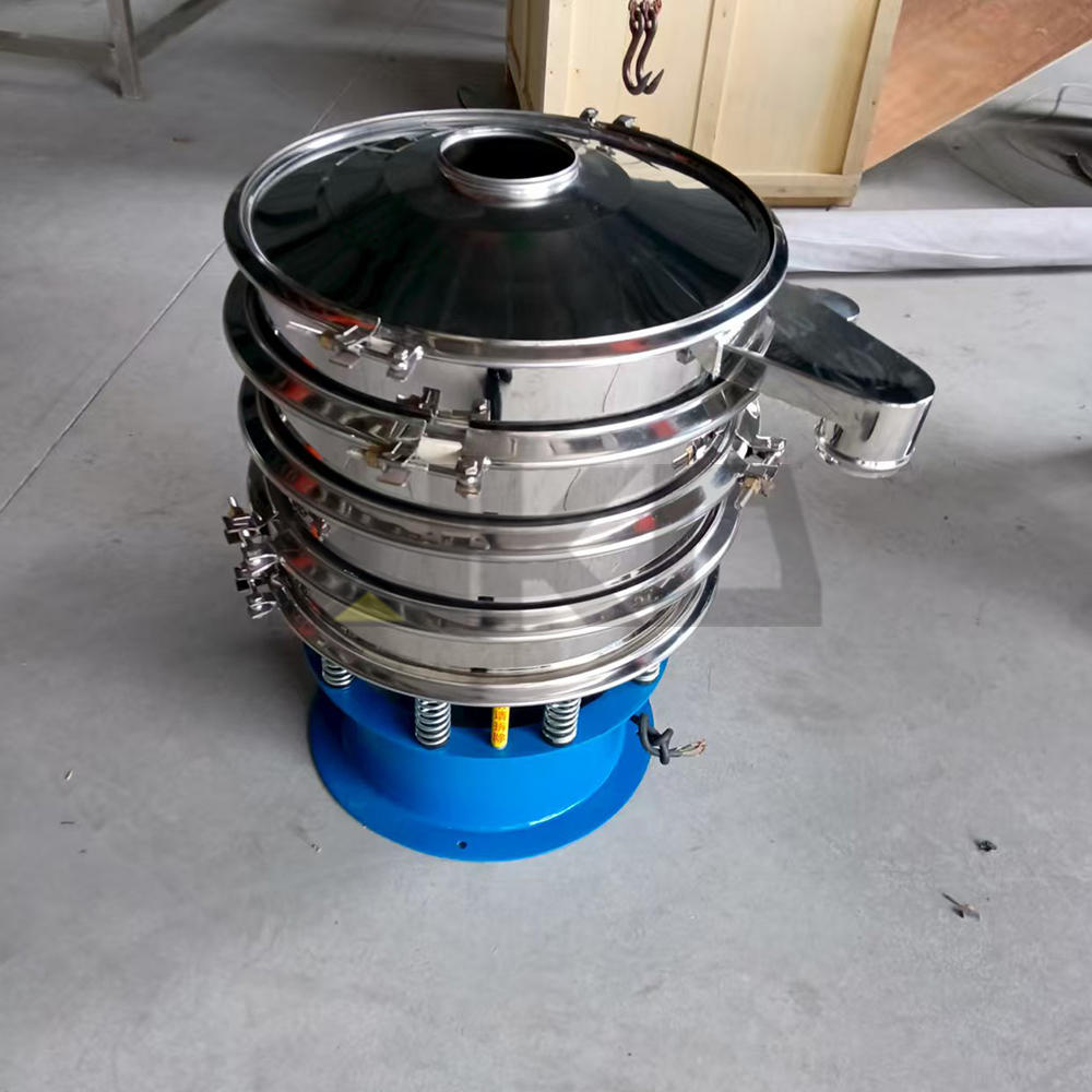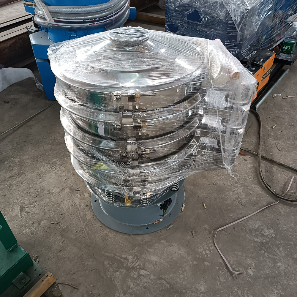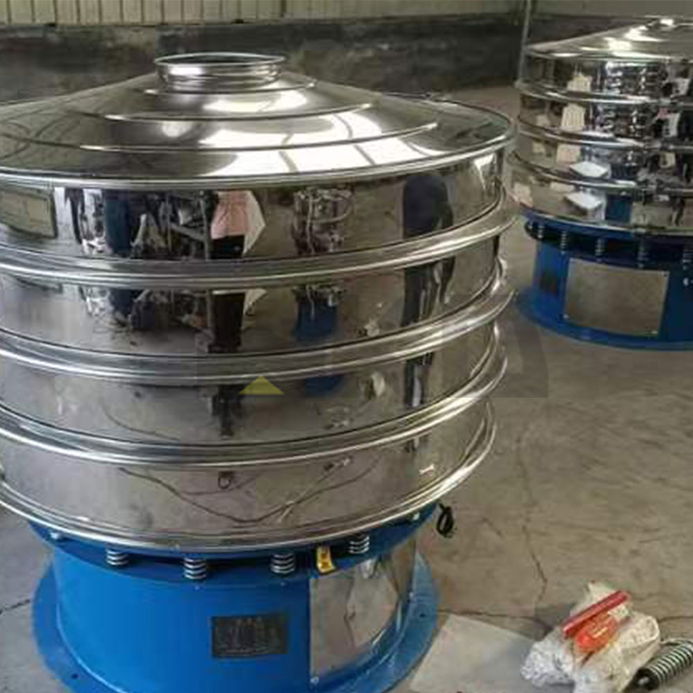 Rotary vibration screen is a high precision fine powder screening machine, with low noise and high efficiency. It takes 3-5 minutes to quickly change the net.The rotary screen is made of an upright motor as the excitation source. The upper and lower ends of the motor are equipped with eccentric hammer. The rotary motion of the motor is transformed into horizontal, vertical and inclined tridimensional motion, which is then transmitted to the screen surface.By adjusting the phase Angle of upper and lower ends, the movement track of materials on the screen surface can be changed.Materials can be fine screening, probability screening, etc.