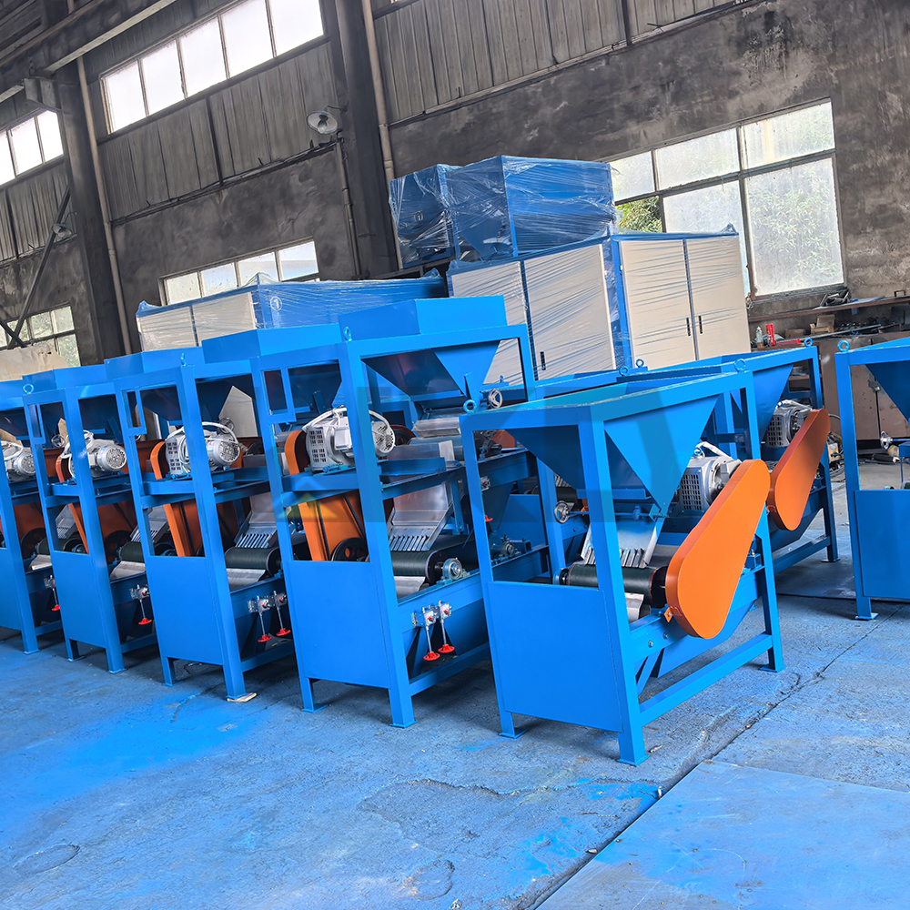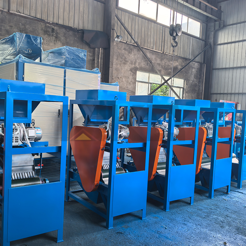 The Double-Roller magnetic separator is a dry-type magnetic separator. The magnetic roller is made of high-performance permanent material rare earth NdFeB through polymerization. It consists of three different diameters and a magnetic field intensity roller, the upper one is a 1200Gause magnetic roller, which can separate strong magnetic minerals like iron, the middle one is a 5500-6500Gause magnetic roller, which can separate weak magnetic minerals like titanium, the lower one is a 9500-11000Gause magnetic roller which can separate some rate earth minerals like monazite.