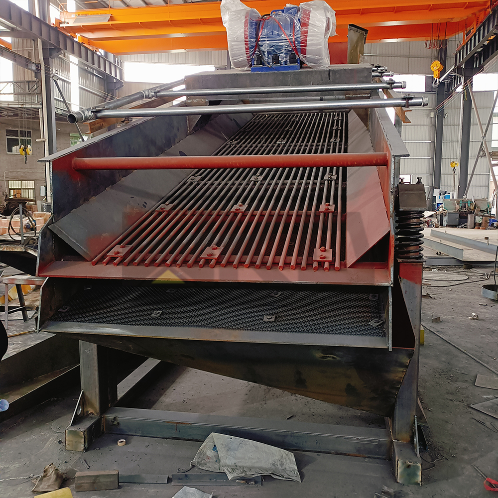The vibrating screening gold washing machine with the characteristics of large work volume, low production cost, and wide applicability, suitable for working conditions with a lot of stones. The equipment consists of a silo, a vibrating screen, a return chute, a water pump group, and other systems. The drum screen and other water pump systems are driven by an electric motor or diesel engine, and the water volume is adjustable. The equipment can be customized according to the working conditions and customer needs- Integrated design, simple operation, labor-saving, combined with the newly developed gold sorting carpet. It is obvious of the gold sorting effect. It's a good and popular placer gold beneficiation nowdays.